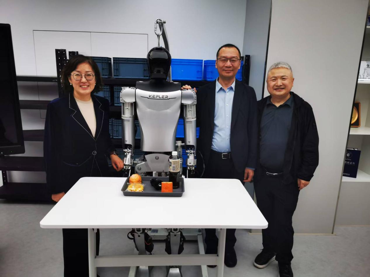 调研最后一站,走访团队来到了上海开普勒机器人有限公司。开普勒聚焦人形机器人核心技术自主研发,产品应用于商业服务、科研教育等多个场景。公司负责人介绍了公司的核心技术优势、生态合作布局及国际市场拓展规划。座谈中,双方围绕科研教育合作、实习岗位开放、跨文化交流活动策划等方面达成多项共识,均表示希望能搭建合作平台,让学生在机器人领域的跨境交流、市场推广等岗位中发挥专业所长。