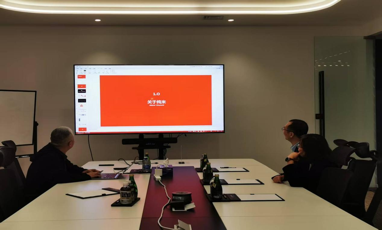 随后,潘景文书记、黄萍院长走访了校友企业纯米集团。黑龙江大学96级英语系校友、纯米科技(上海)股份有限公司副总裁尹海滨热情接待了调研团队,详细介绍了公司在跨境电商、海外营销、多语言内容创作等领域的业务进展。座谈中,黄萍院长重点介绍了学院在复合型人才培养等方面的特色培养项目,表示纯米集团的海外市场布局与学院的人才培养方向契合。潘景文书记希望院企双方能以校友工作为平台,共同构建专业+实践的人才培养新模式。