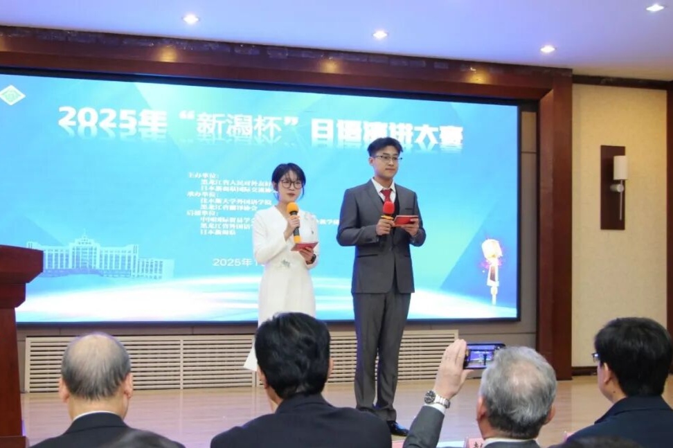 在近日于佳木斯大学落幕的2025年“新潟杯”日语演讲比赛中,我院选派优秀学子参赛并取得优异成绩。经过与全省9所高校选手的激烈角逐,我院王晴同学凭借出色的语言应用能力和富有创意的演讲内容,最终荣获大赛二等奖,彰显了黑大学子的卓越风采。