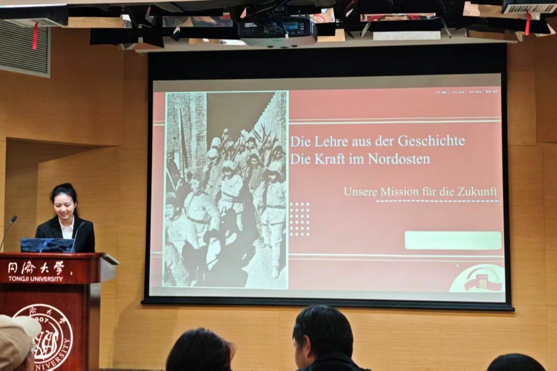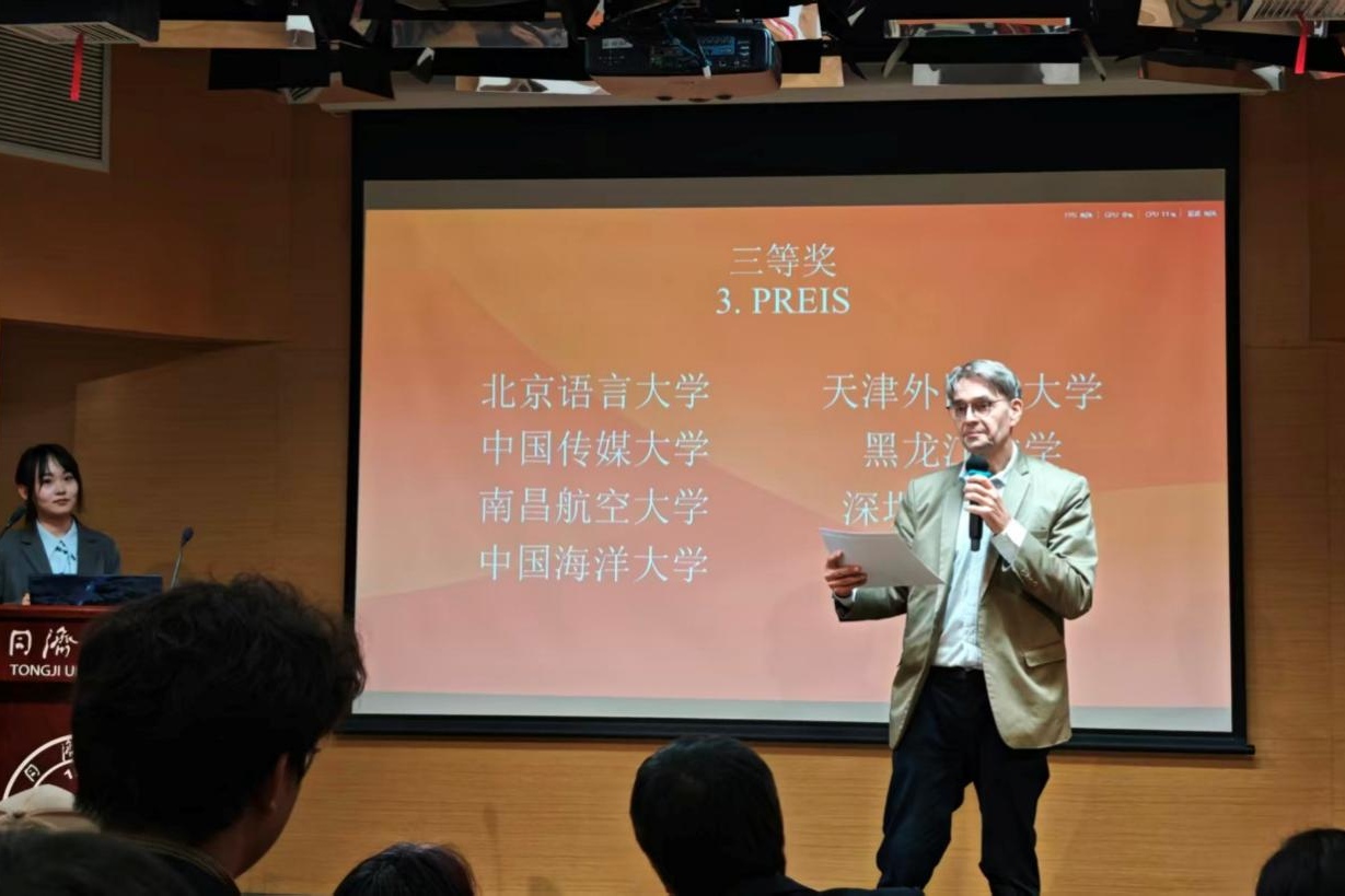 “德语之星”全国高校德语演讲比赛由同济大学外国语学院主办,同济大学外国语学院德语系承办,教育部首批虚拟教研室“德语本科专业教研室”、Verein Deutsche Sprache e.V.(德国语言协会)、上海外语教育出版社协办,中国德国友好协会指导,是全国德语教育领域极具影响力的赛事平台。本届比赛以“用历史照映现实”为核心框架,恰逢中国人民抗日战争暨世界反法西斯战争胜利80周年,旨在引导青年学子通过语言学习深化对历史与未来的思考,在全球化语境中传递中国声音、讲好中国故事。