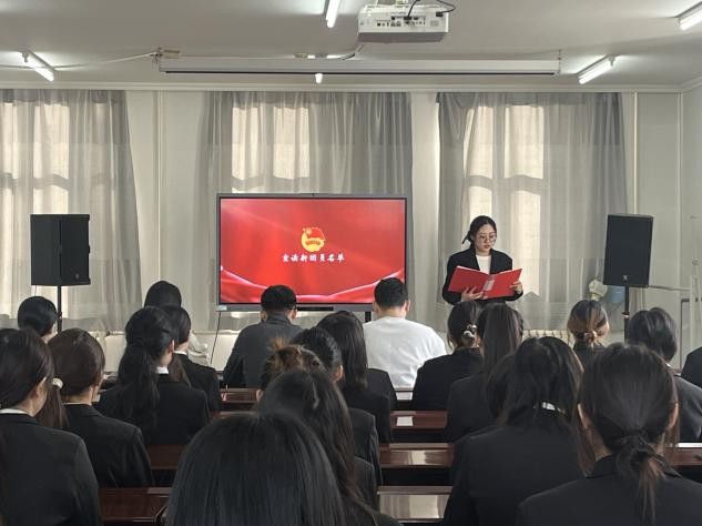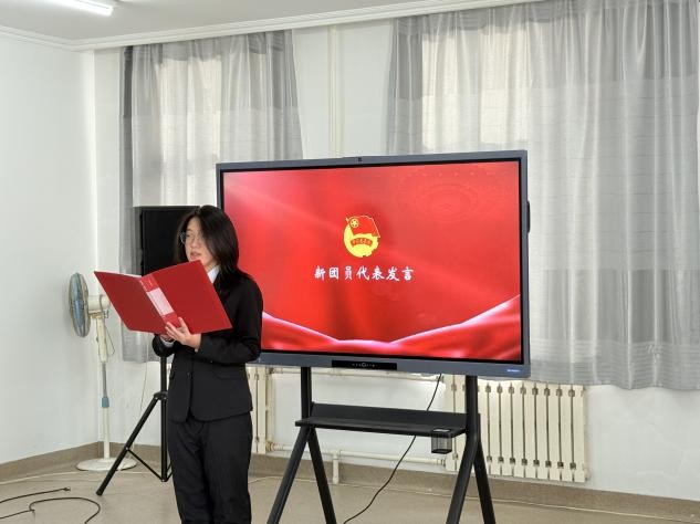 学院团委副书记张雪晴代表学院团委向新团员表示祝贺,并提出殷切期望。她勉励新团员要坚定理想信念,练就过硬本领,锤炼高尚品格,将个人成长融入国家发展大局,努力成为社会主义事业的合格建设者和可靠接班人。