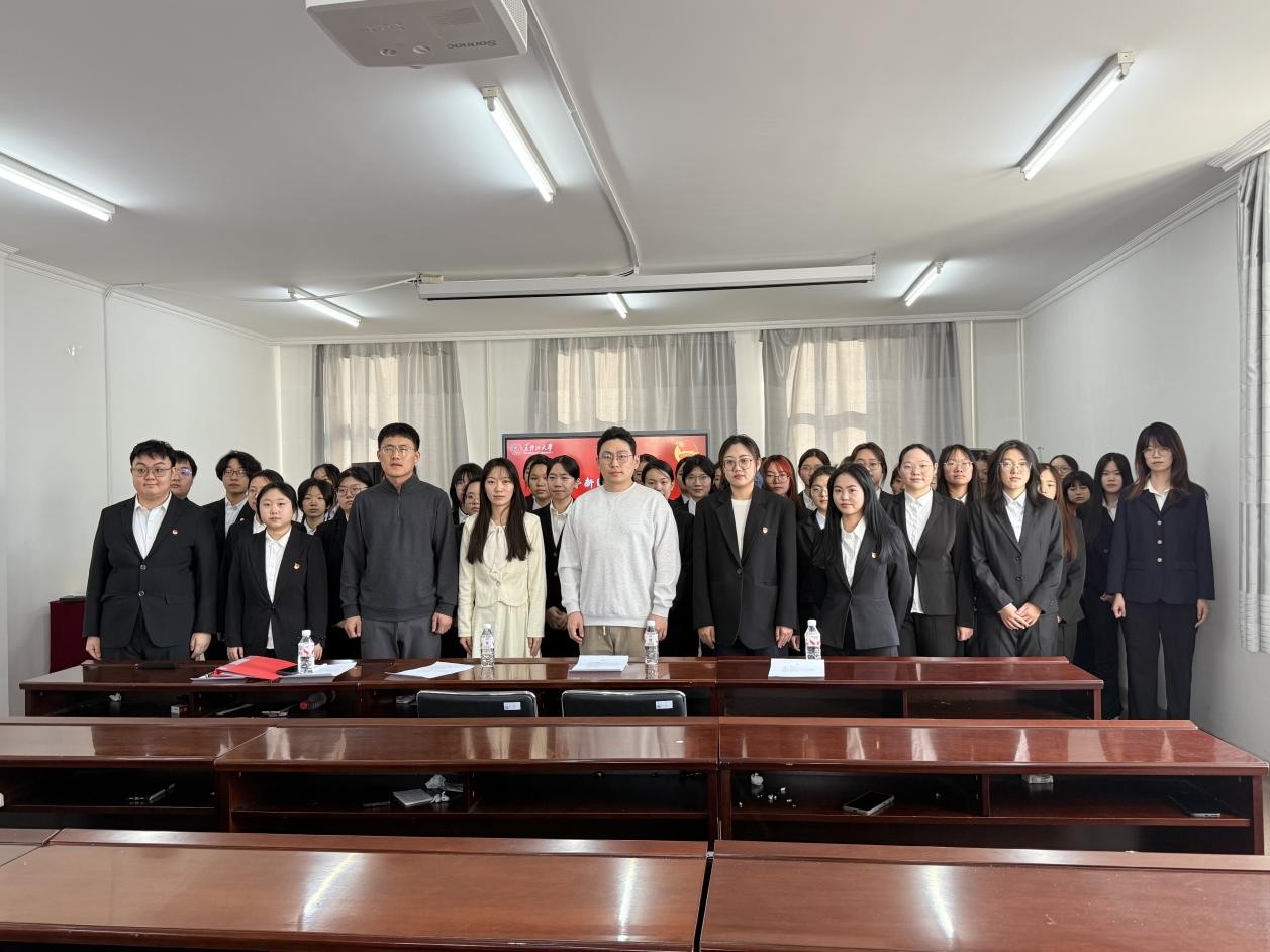 2025年11月20日,外国语言文学学院(区域国别学院)在主楼B301室举行2025年秋季学期新团员入团仪式。本次仪式由学院团委学生副书记何诗苑主持,学院团委书记于洋、团委副书记张雪晴、韩鹏、贾美微,团委学生副书记及全体新发展团员共同参加。