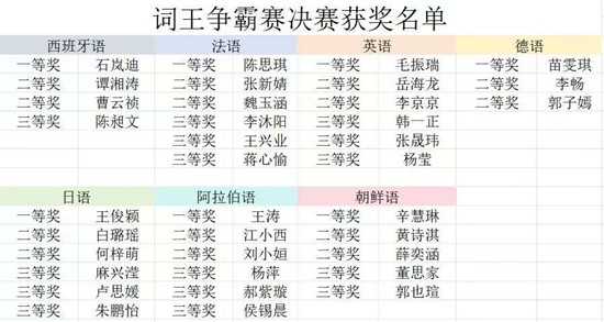 语言无界,热爱不散!本次词王争霸赛圆满结束。赛场上,我们既见证了实力翘楚凭借过硬的词汇功底脱颖而出,更真切地感受到,这场以词为桥的比拼点燃了选手们对语言世界的探索热忱。以赛会友,让不同语种的温度在交流中相融;以赛促学,让多元语言的魅力在碰撞里浸润心灵。这份对语言的热爱,不会随赛事落幕而消散。愿此后深耕辞海,笃行不怠,以词为翼,逐光而上,终揽星河。(外国语言文学学院供稿)
