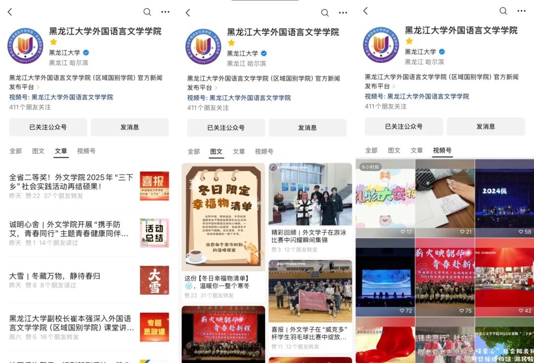 外文学院学生会高度重视新媒体阵地建设,持续加强宣传运营工作。本年度精心制作并发布多篇原创推送,内容涵盖活动预告、成果展示、风采纪实等;同时积极配合校团委、校学生会完成相关宣传任务,及时转发重要通知、传递主流声音。通过构建多元立体的宣传矩阵,有效提升了学生会工作的传播力、引导力与影响力, 让青春正能量在线上线下同频共振、广泛传播。
