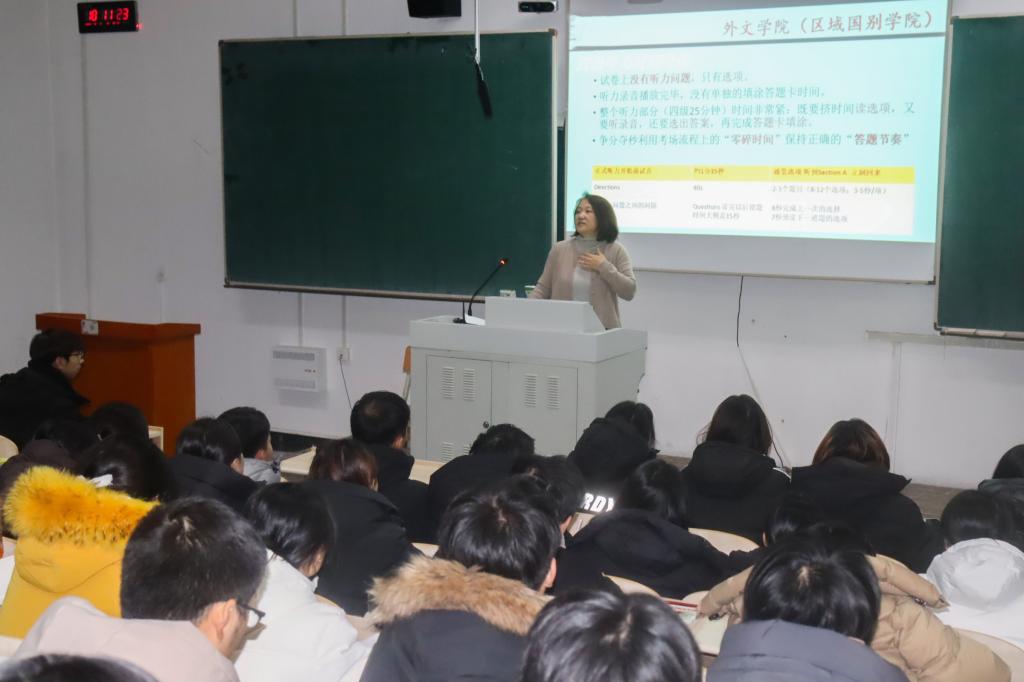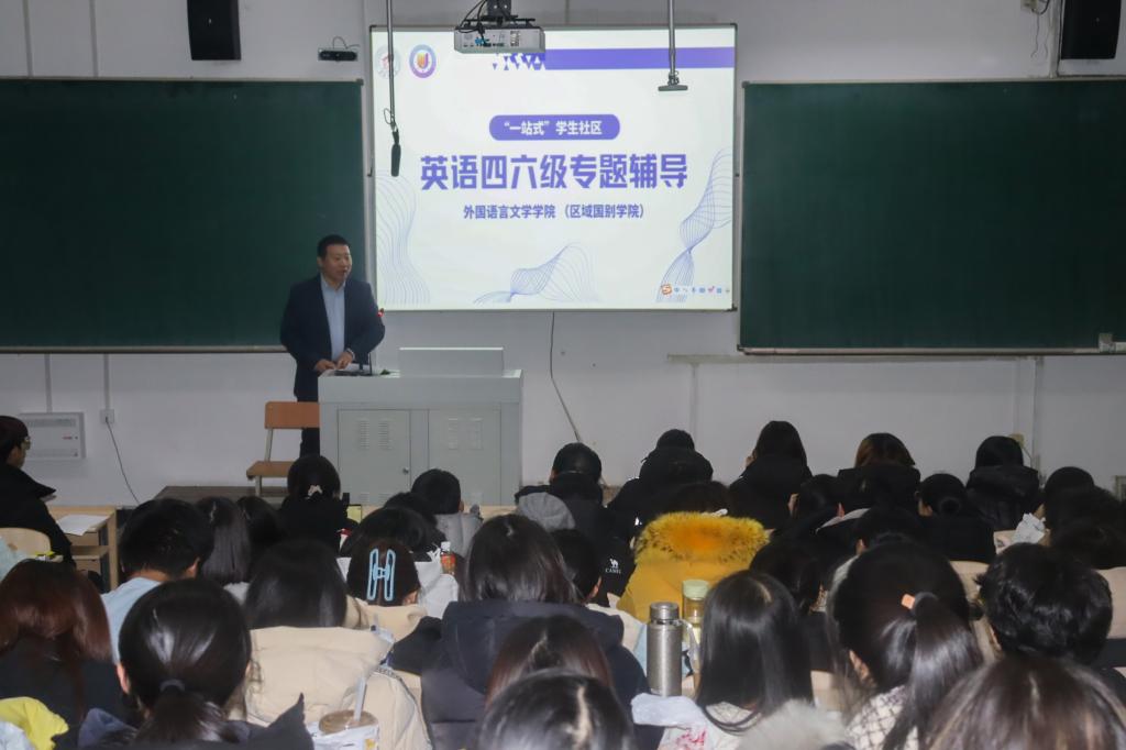 近期,英语四六级考试临近,外国语言文学学院(区域国别学院)积极回应学生备考需求,依托“一站式”学生社区平台,分层分类开展四六级考前辅导活动。学院副院长李晓光、辅导员韩鹏参加,徐德凯、王凤两位教师以及优秀学生代表担任主讲。活动共吸引来自全校各学院300余名同学参加,切实提升了学业支持的针对性与实效性,进一步助力学风建设落到实处。