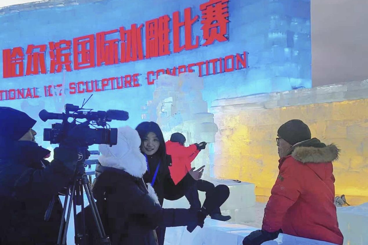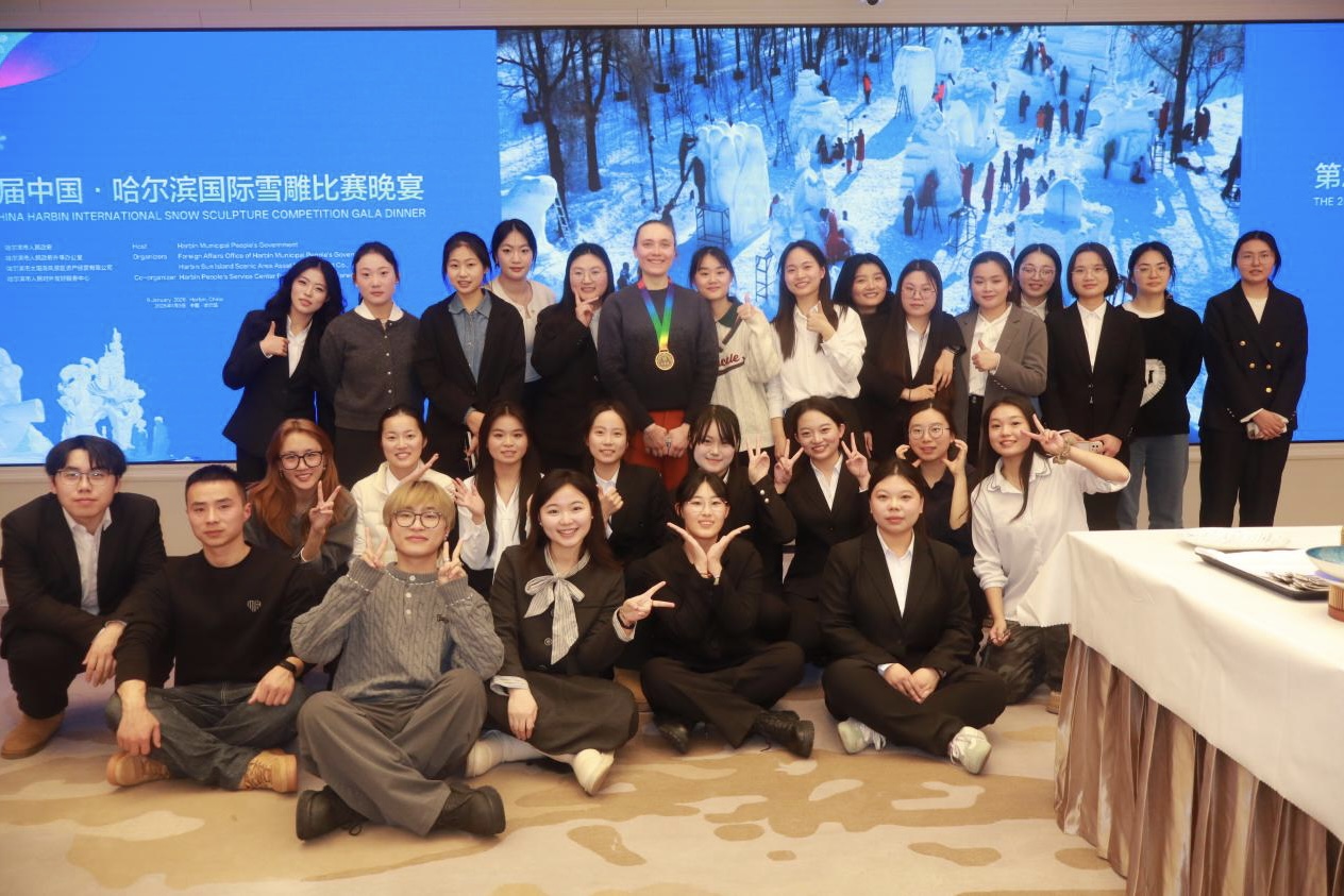 2026年1月1日至1月10日,第37届中国·哈尔滨国际冰雕比赛和第28届中国·哈尔滨国际雪雕比赛于哈尔滨成功举办。这场以冰为媒、以雪为契的国际赛事,吸引了来自中国、俄罗斯、印度、西班牙、波兰、韩国等多个国家代表队参赛。受哈尔滨市人民政府外事办公室商请,外国语言文学学院精心组织并选派了15名英语、朝鲜语专业志愿者,通过前期系统培训,为赛事提供了全流程、精准的语言服务保障。