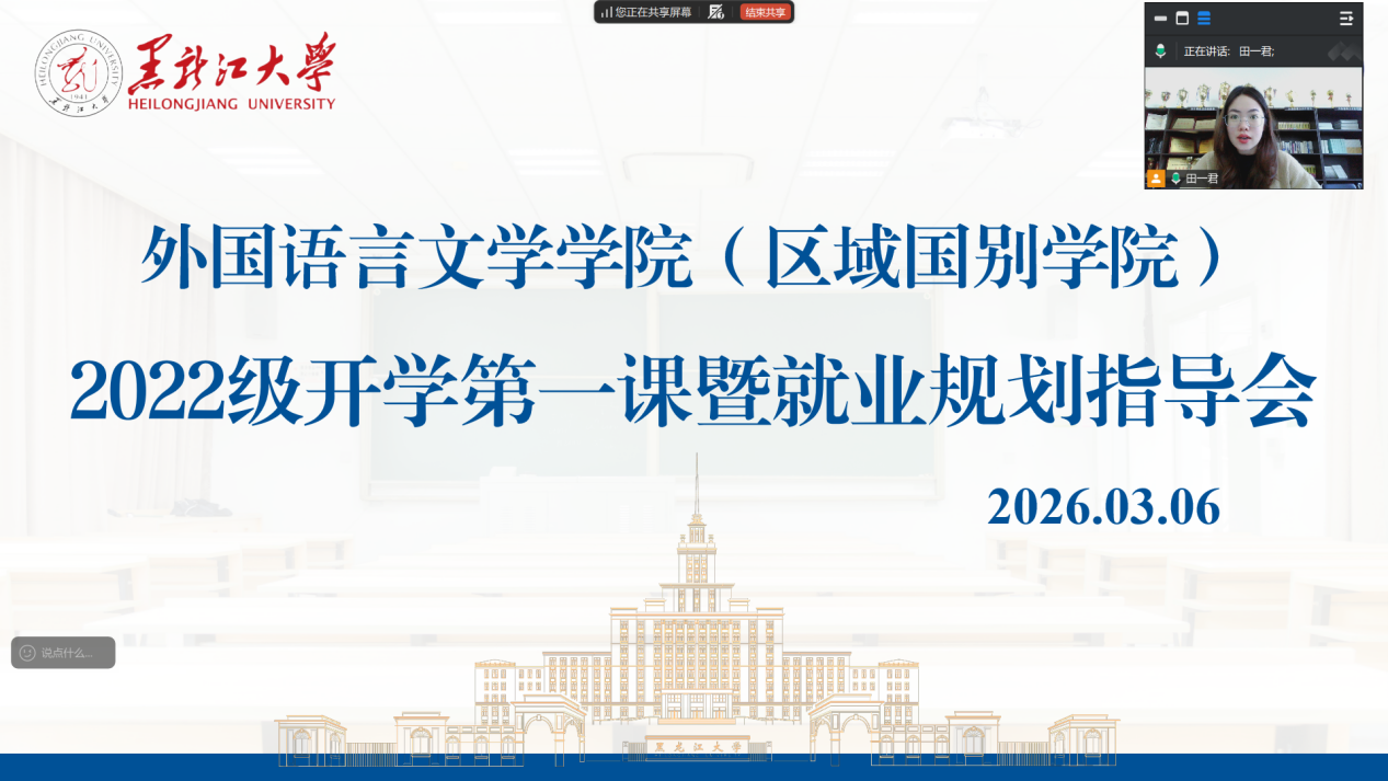 为扎实做好毕业班最后一学期教育管理与服务保障工作,帮助全体学生在关键时期快速调整状态,筑牢学业发展与安全防护根基,确保全体同学安全毕业、文明毕业、顺利毕业、高质量就业。3月6日下午,外国语言文学学院(区域国别学院)召开2022级新学期年级大会暨就业实习工作推进会、春招动员会。本次会议由学院2022级辅导员田一君、王宇滢主持,2022级全体学生参会。